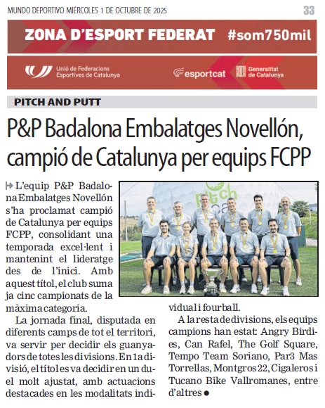 4ª Divisió Nord: Campió: Par3 Mas Torrellas, Subcampió: Cicapitch, 3er