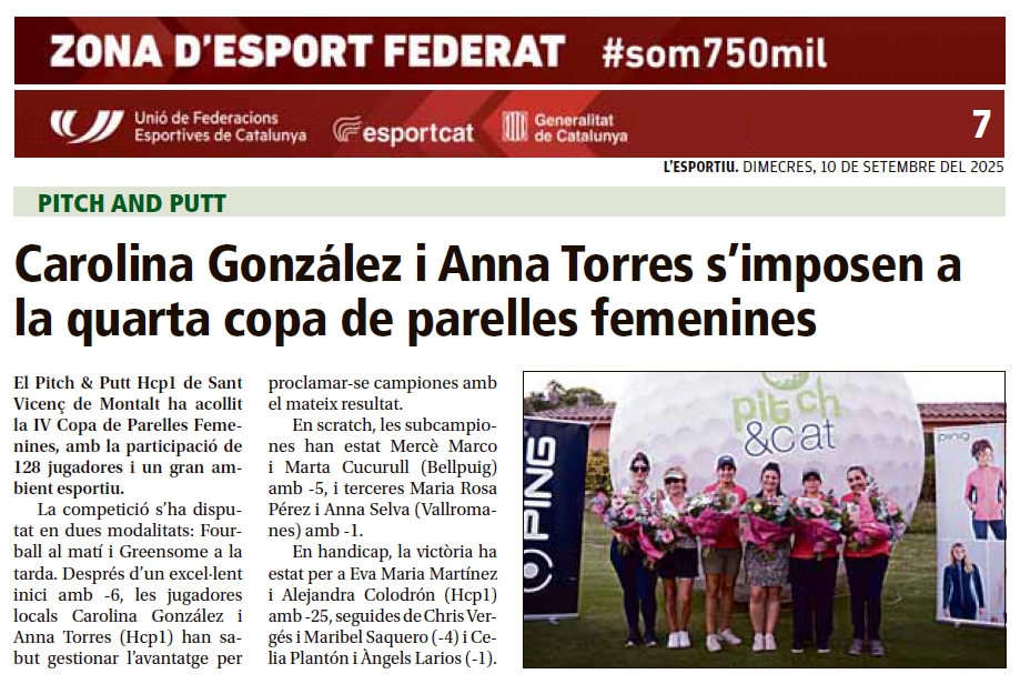dissabte 6 de setembre, el Pitch & Putt Hcp1 de Sant Vicenç de Montalt