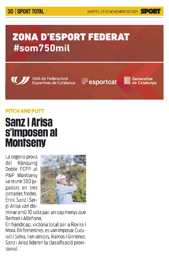 Del 21 al 23 de novembre, el P&P Montseny (Gualba) va acollir la 2a prova del Rànquing Doble FCPP 2025, una competició que va reunir 380 jugadors i jugadores i que va estar organitzada per la Federació Catalana de Pitch & Putt.