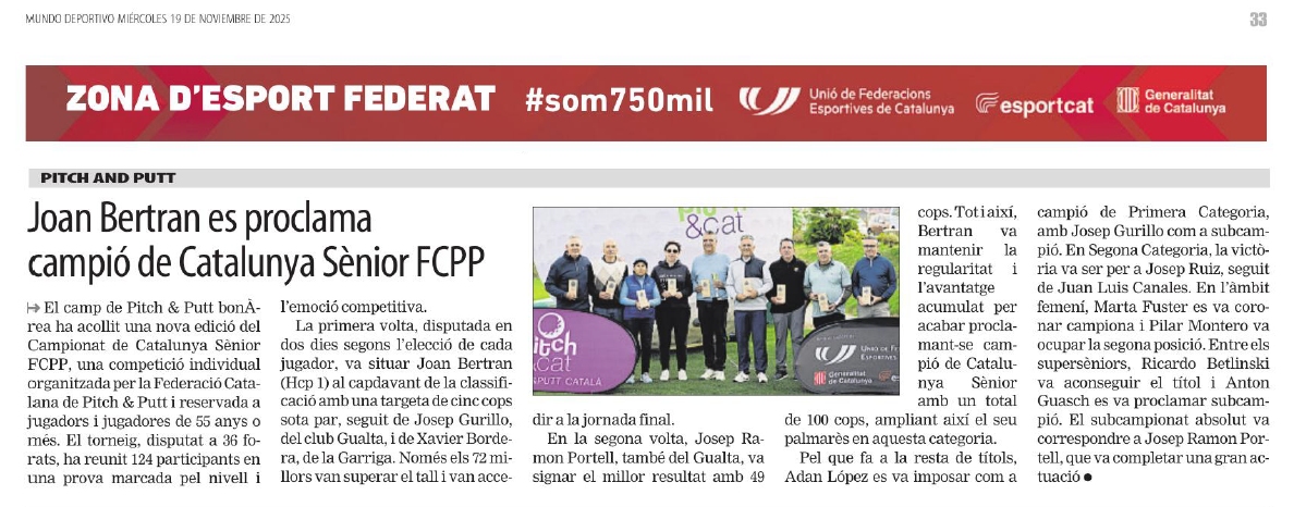 proclamant-se Campió de Catalunya Sènior 2025 amb un total acumulat de 100